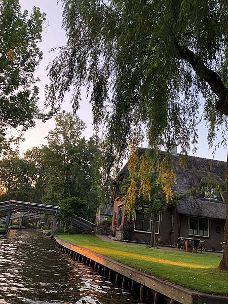 從阿姆斯特丹機場租了車,直奔羊角村大概一個半小時的車程,一路上迎接我們的是風力發電的大風扇,看著這樣遼闊的視野,心情不自覺的開心起來😁 羊角村沒有五星大飯店,有的是富有人情味的小酒館旅店,我們入住的Hotel De Pergola, 附近就有超市可以買點乾糧,記得只能是乾糧喔!因為房間沒有冰箱。另外旅店沒有電梯,不想扛行李可以放櫃檯,只是櫃檯也沒人在那裡,一整個治安超好的概念! 可愛且日光充足的房間,不到十點太陽不下山,這次行程規劃在羊角村真的就只有一晚,所以今天也準備要玩到半夜囉! 餐廳也是一整個可愛 我們就在旅店沿著河堤旁吃晚餐,連麻雀也不怕生的下來討食。薯條是荷蘭的主食,幾乎每一道餐都看得到它,我們選了道地的農家菜,大塊吃肉喝酒!難得在歐洲吃到這麼貼近亞洲人口味的菜色。 吃完晚飯七點多天色還大亮著,開始羊角村趴趴走囉! - 7月 27 週五 201813:18
