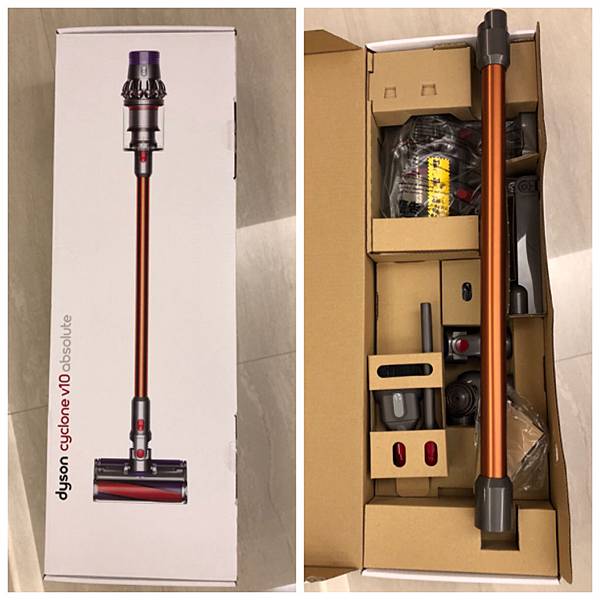 這次要跟大家分享的是,在百貨週年慶時讓主婦們槍破頭的~Dyson v10吸塵器,這次分享的當然也是Co co去跟人家搶來的,號稱史上最狂的V10無線手持吸塵器,聽說這款出了以後,Dyson不再作有線的了,非常得意的作品,終於讓Co co決定入手~ 開箱囉!一共11件 ,有六種刷頭 這個大炮一樣的就是整個精華所在,試了一下果然轉速驚人,光是聲音聽起來就覺得很厲害,決定把它帶回家除了馬力超強外加可以持續使用一個小時以外,還有個重要原因就是~清灰塵超方便的,紅色把手往前推集塵盒會整個往前接著打開蓋子,完全不會弄髒手(感動😭) 如果有嚴重潔癖一定要洗過才安心,也可以按住箭頭往前推,整個拆下來洗,這下總安心了吧! 吸床鋪這個一定要試試,你會很有成就感的,(阿不然是有多髒?)其實就是棉絮啦!吸車子內裝用v10,整個就是快、狠、準,三兩下就清潔溜溜了,貴果然是有道理的。另外還有地板專用頭和吸地毯專用的刷頭。地板專用的刷頭,刷毛經過特殊設計,它走過之後甚至也不用拖地了,整個發亮。 刷頭地方的轉動也非常輕鬆俐落,可以呈90度轉彎,身體不用跟著轉喔! 原本以為大炮在上面可能會頭重腳輕,結果沒有耶!肩膀自然放下往前就行了,不費力喔!這次V10的使用心得是很滿意的,很值得入手的產品!推~- 10月 10 週三 201801:21